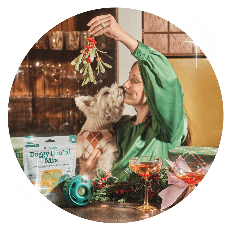 For just 48 hours, take 25% off Bite n’ Brush, Refills, and Doggy Dental Mix for fresh kisses under the mistletoe.