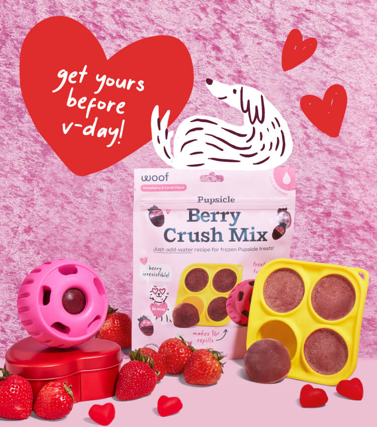 Spoil your four-legged bestie with our Berry Crush Mix and Valentine Pupsicle—while supplies last!