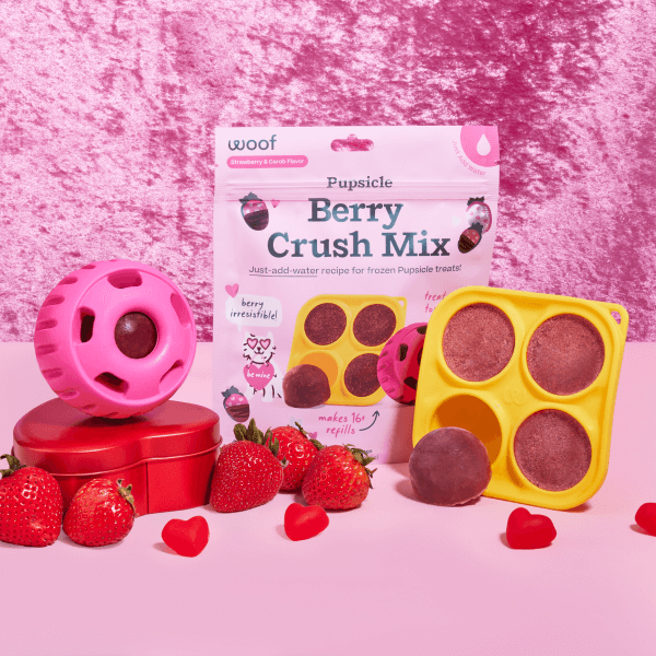 Juicy strawberry meets dog-friendly carob for a decadent Pupsicle treat they’ll love from the first lick.