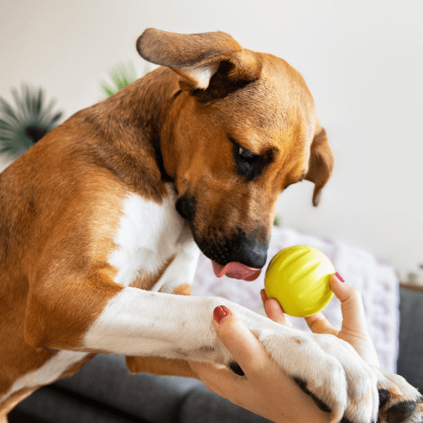 He was so excited. A ball that doubles as a treat puzzle after fetch was perfect!