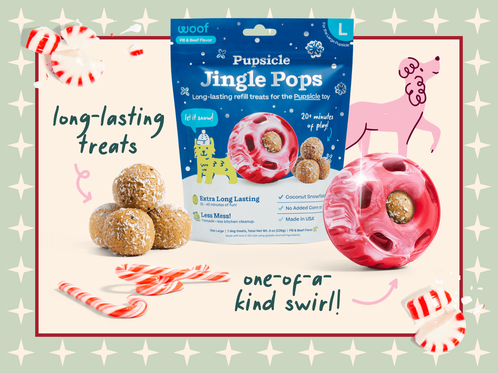 Let it snow! These limited-edition Pupsicle Pops bring a holiday twist to our longest-lasting lickable treats.