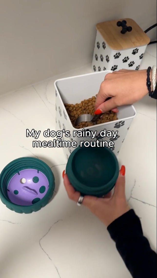 Our 2-in-1 rolling slow feeder and puzzle toy—plus treats to keep play going.