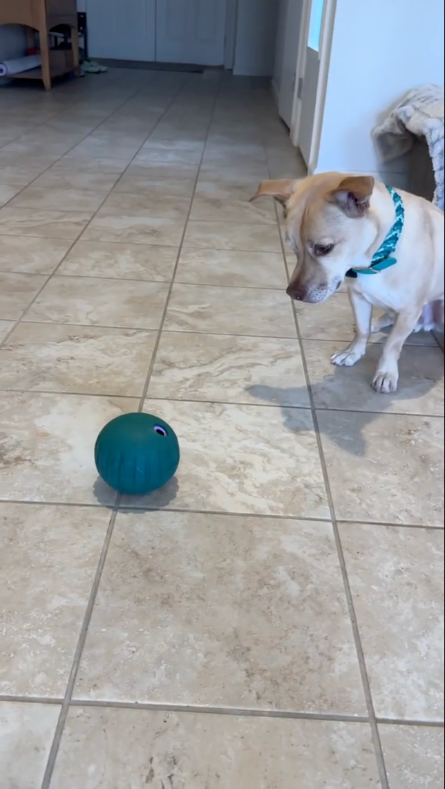 “She started pushing it around with her nose to get the treats, … she was so excited about the ball.”